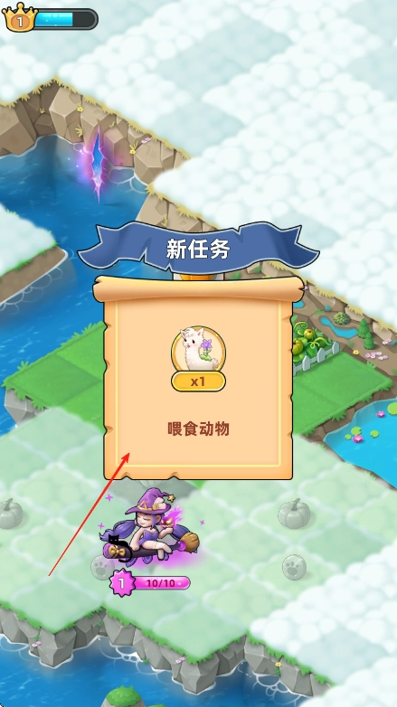 1. 开启游戏后,当看到弹出的新任务界面,留意到任务是给动物喂食,从而明确任务目标。