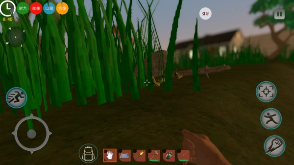 4. 左手负责控制移动,右手掌控攻击。同时,需时刻留意左上角的耐力、生命、口渴和饥饿等各项数值。