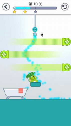 《青蛙爱旅行》操作简便,玩法通俗易懂,其玩法与《快乐的玻璃杯》有些相似。玩家只需把游戏里的水引入浴缸,具体操作就是点击屏幕释放水,让青蛙跳进浴缸,玩法十分简单,适合各个年龄段。在游戏中,青蛙行进的距离越远,玩家获得的积分就越高。整个游戏玩法简单、操作轻松,只要能让青蛙成功洗一次澡就算达成目标。