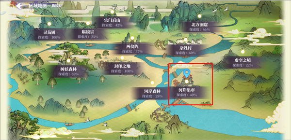在探索之前,首先要和小伙伴们明确我们今天所在的地方,位于临镜谷的河岸集市!河岸集市是《春秋封神》中最为热闹有趣的的地点之一,不仅探索地点多,宝藏也非常充足,不仅如此,河岸集市的NPC对话剧情也是非常丰富的。