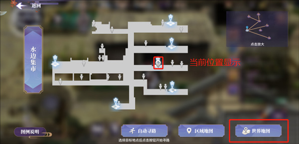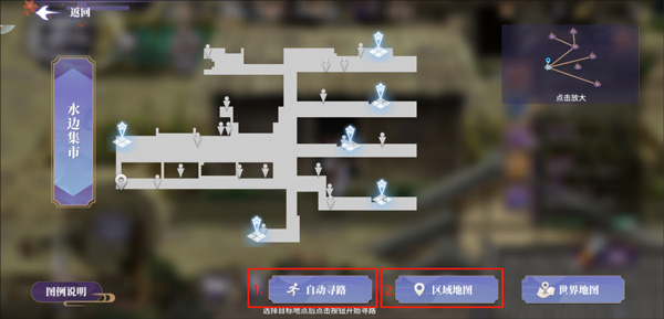 第一个是自动寻路,小伙伴们可以选定当前所在区域的任意地点,点击自动寻路就可以自动到达选定区域,无需小伙伴自主探索。