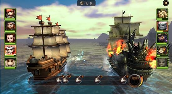 加勒比海盗:启航核心特色玩法“大海战”。当玩家通关主线剧情7-10船长室后,便会开启。