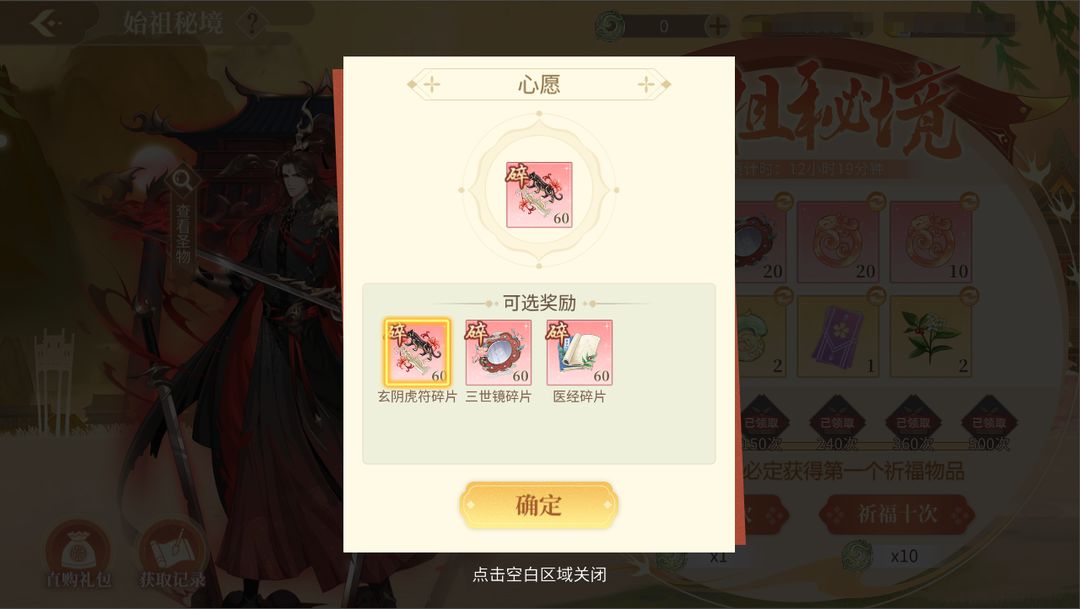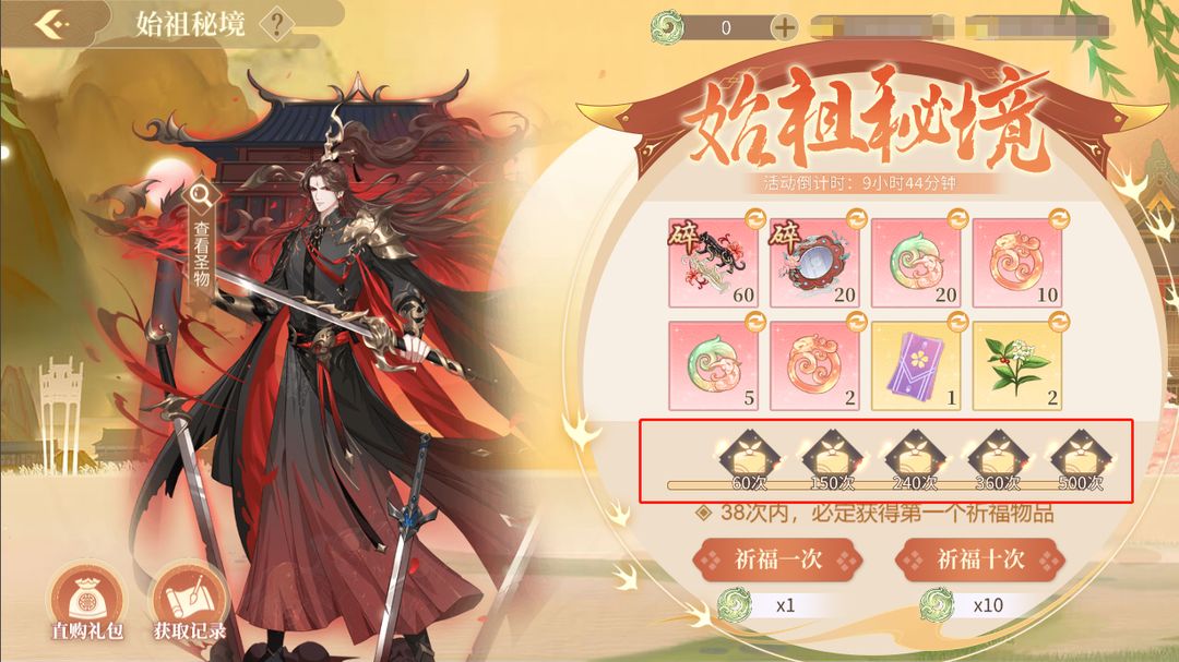 【始祖秘境】活动期间,抽卡次数达到60/150/240/360/500次时,可以领取额外的物品奖励。活动结束后未领取的次数达成奖励会通过邮件发送,就算忘记领取也不会造成损失。