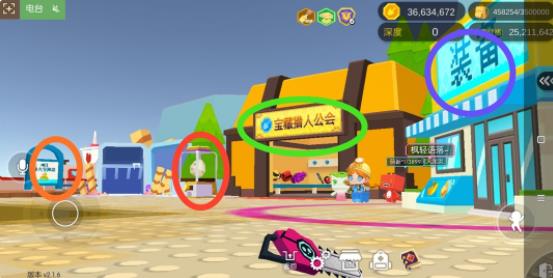 橙圈:私人宝藏岛入口(需氪金购买,也可进入他人开放的岛)