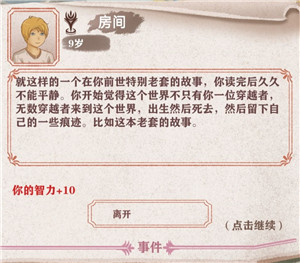 9.前期在房间看书有几率能看到冒险家的故事,看完他的故事可以获得+10智力