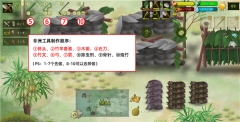 开局制作工具的先后顺序:①斧头、②竹竿套索、③木锄、④石刀、⑤竹叉、⑥弓、⑦箭、⑧除虫剂、⑨骨针、⑩炮竹