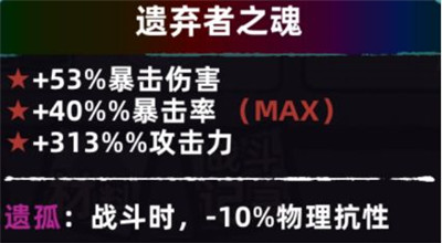 遗弃:攻击力(MAX)猜测600,爆伤伤害(MAX)猜测60%