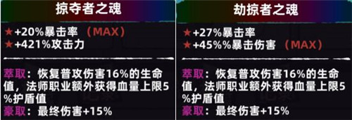 掠夺者之魂和劫夺者之魂:技能一样,但劫掠者收益更高。