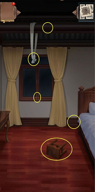 选择:悬梁白绫、一匹白绫、红色的旗袍、一双红绣鞋、锁住的窗户、死者的妆容、房梁上的黑手印、黎水水脖上勒痕和踩倒的方凳。