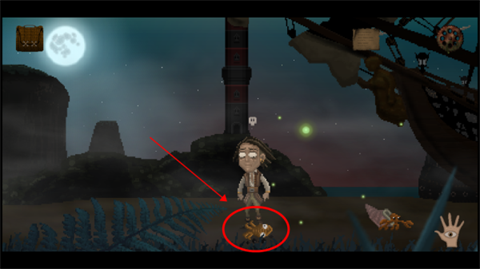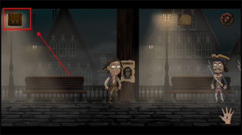3、就拿第一个难题来说,要对通缉犯的画像进行改变,接着往屏幕左边行进,一直走到乌贼所在之处,点击手掌图标把乌贼拾取起来。
