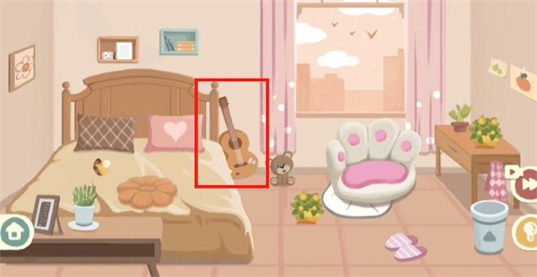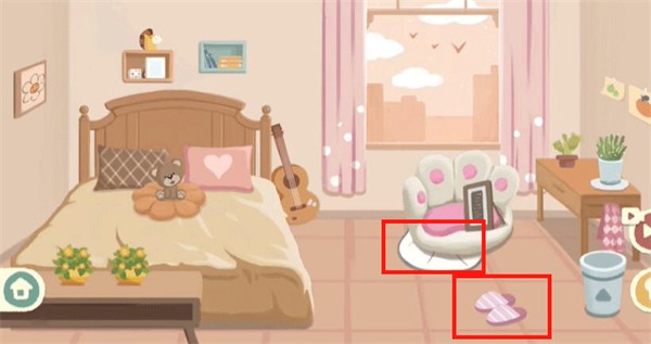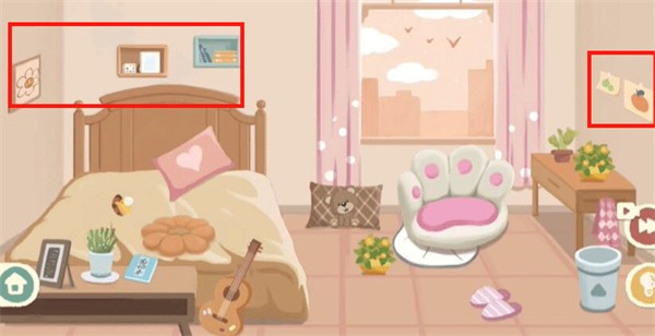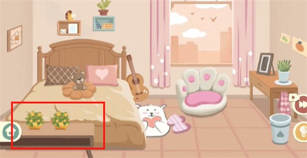 8、最后我们摆正床头上的收纳格,放好小马摆件,右边放小盆栽即可过关。