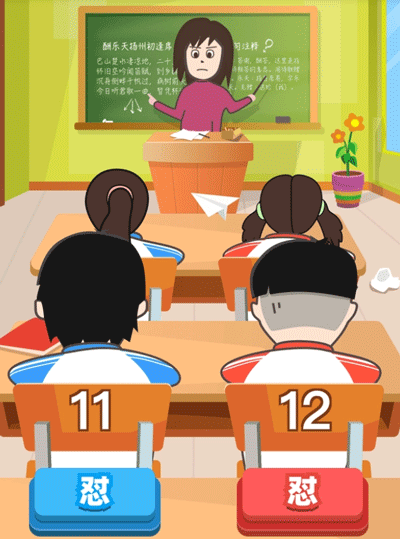 2、老师在授课过程中会时不时回头看我们,因此我们得时刻留意老师的举动,不然一旦被发现有不当行为,就会被罚站,同时停止得分。