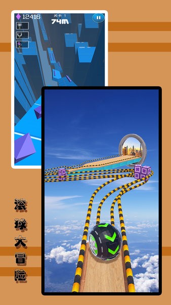 3)赛道设计复杂多样且变化丰富,需灵活掌控滚球的角度与速度,维持平衡避免倾倒。