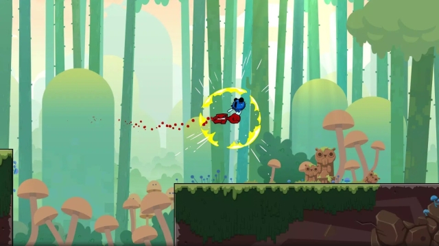 总体来讲,《超级食肉男孩:永无止境》的操控体验极佳。连续按下两次跳跃键,食肉男孩便会向前冲刺,同时挥出他那硕大的拳头,砸向任何处于前方毫无抵抗能力的敌人。这些小怪基本上不构成威胁,它们往往起到辅助食肉男孩跳得更远的作用,使他能够跨越较宽的坑洼。食肉男孩的出拳动作要在击中敌人之后才会重置,只要拳头尚未收回,就能让食肉男孩滞留在空中。这一机制十分有趣,用拳头捶打敌人也颇具乐趣。遗憾的是,跳跃和攻击使用的是同一个按键,因此当想要跳跃时,很容易误按成攻击,紧接着就只能无奈地看着食肉男孩从悬崖边缘冲出去。倘若跳跃和攻击能够使用不同的按键,想必可以避免许多令人懊恼的误操作。在《超级食肉男孩:永无止境》这种对操作精准度要求颇高的游戏中,此类误操作的影响尤为严重。