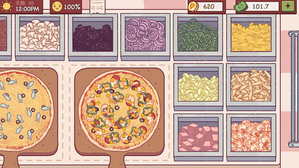画面营造得温馨且亮丽,你可以清晰看到食物的烹饪步骤。无论是添加青椒圈,还是撒上芝士碎,都完全没问题,这使得你能够制作出不同口味的披萨饼。随着等级持续提高,食材愈发丰富多样,你还能够烹制出各式各样口味的美食。