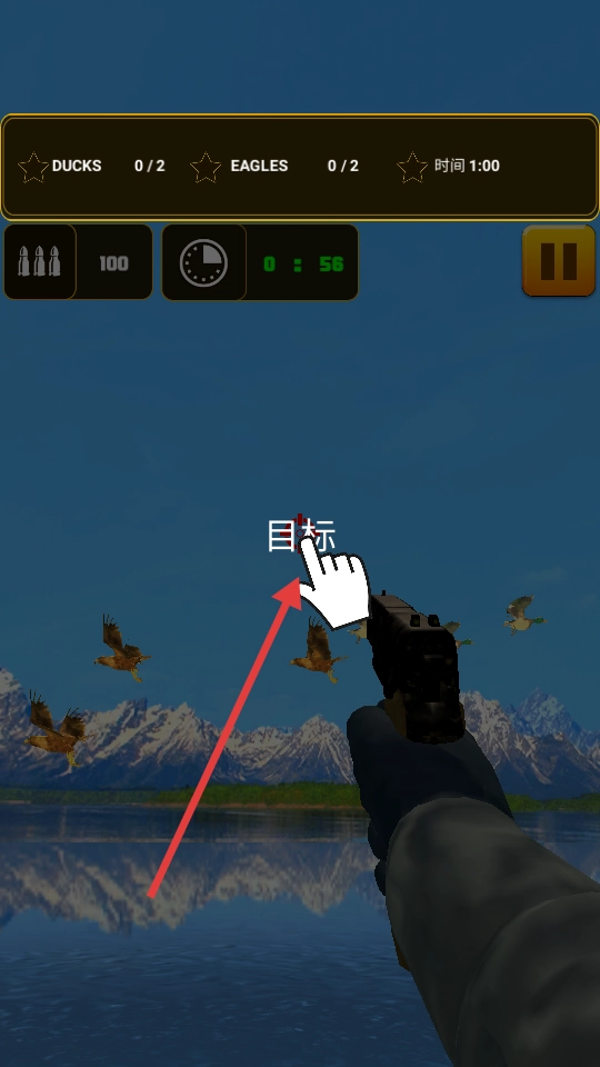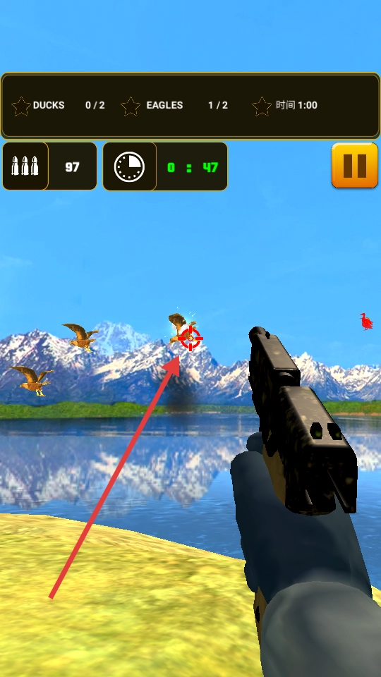 1、左手稳住准星,右手持续射击,别忘了打中鸭屁股也能得分。