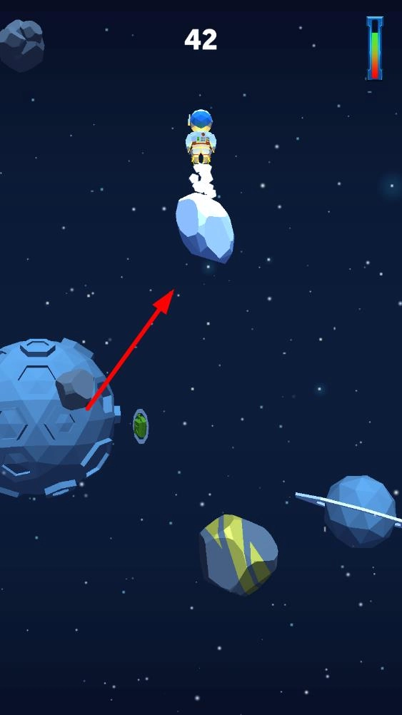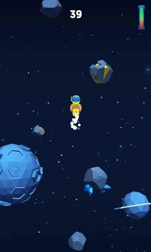 3、太空主题场景:以太空为背景,搭配星球、陨石等元素,竖屏2D画面简洁明了,色彩对比鲜明,让玩家飞行过程中感受太空的广阔与神秘,增强代入感。