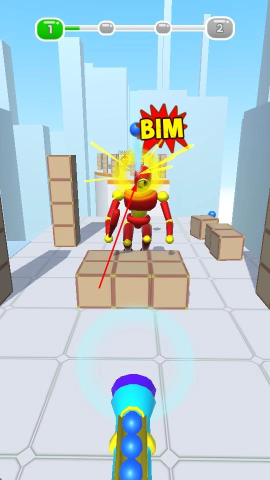 1、操控发射器射击敌人:玩家操控手中的小球发射器或火炮,瞄准前方不断前进的机械人类进行射击,通过精准打击将其击倒,阻止其靠近自己的防线。