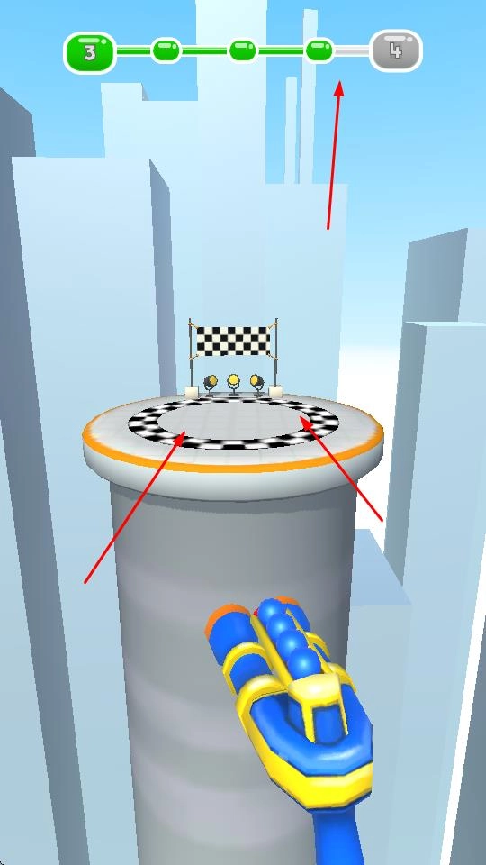 3、朝着插有黑白格子旗帜的终点平台行进,抵达该平台即可完成关卡挑战,进而推进游戏进度。