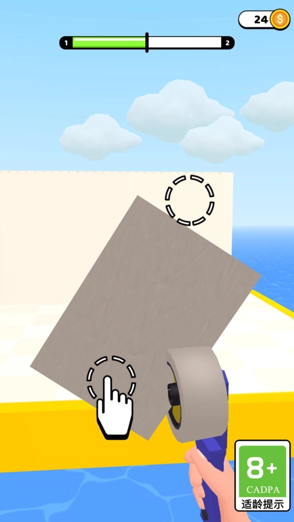 1.玩家操作胶带枪发射绷带,命中敌人后可将其牢牢固定,获得金币奖励提升攻击效率。