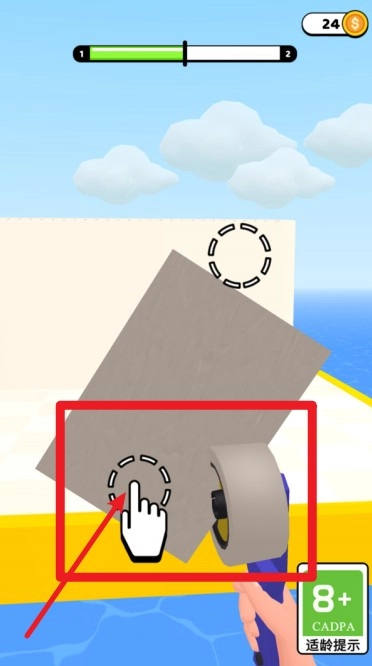 3. 拖动屏幕后松开手指:玩家通过拖动屏幕来调整发射角度,松开手指就能射出胶带,只有精准命中敌人,才能成功阻挡其前进。