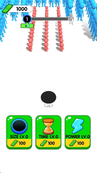 3、持续吸收享爽感:通过不断移动黑洞来吞噬更多士兵与物体,在吞噬数量持续增长的过程中感受酣畅的爽快感,直至吸收场景内的大部分目标,尽情体验这一核心乐趣。