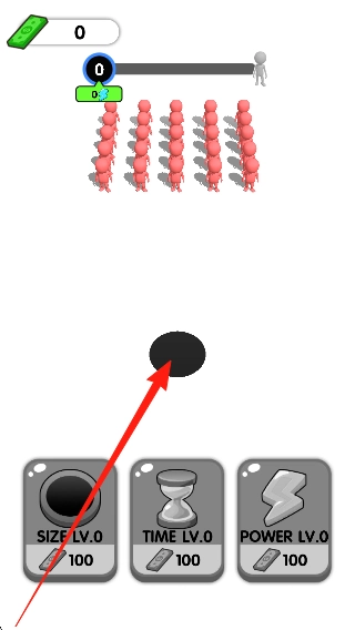1、进入游戏场景后,学习如何创造黑洞,熟悉黑洞的移动操作方式,留意周围的士兵与物体,为吸收环节做好准备。