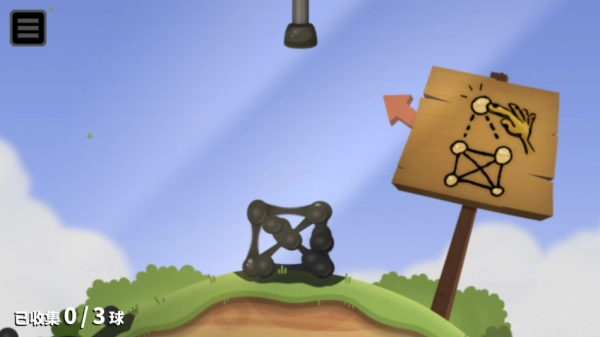 1、玩家要借助粘粘球搭建一座大桥,得把距离拉得稍长些,而且游戏里加入了重力设定,粘粘球会直接垂落下来。