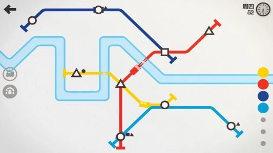 3、随着关卡的逐步推进,玩家需要连接不同颜色的站点,其中黄色线路对应的是方形站点。在此过程中,不断拓展地铁线路,优化线路的整体布局,以此来满足乘客的出行需求。