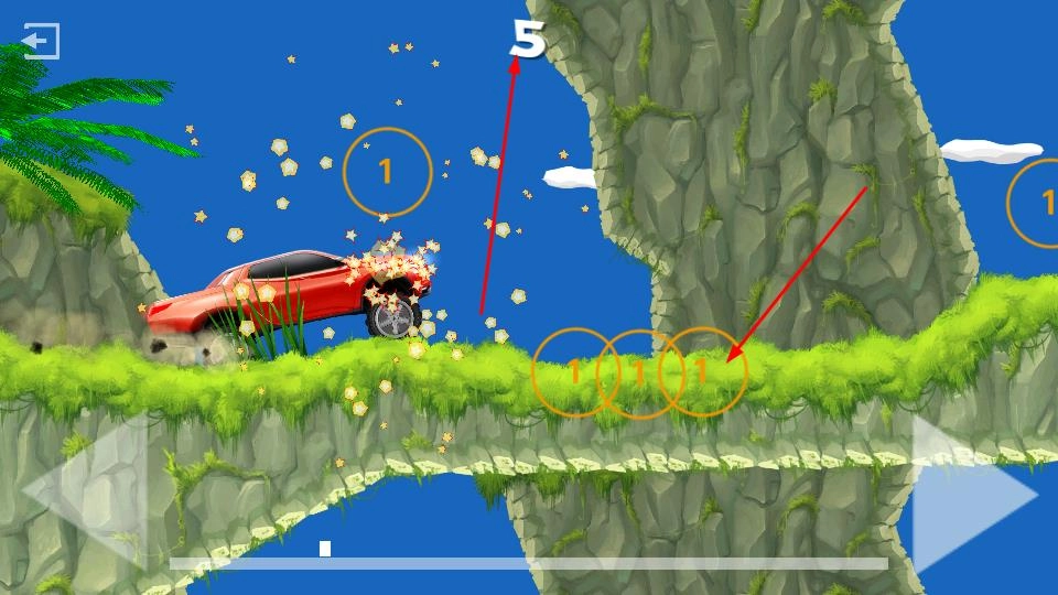 2、在游戏关卡,操控汽车行驶,收集道路上数字标识物品,留意地形变化,合理操作跨越障碍。