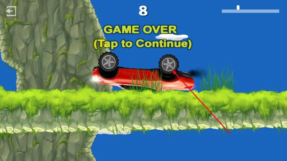 3、要是汽车翻车导致游戏结束,点击屏幕就能重新开始游戏,再次挑战该关卡,努力成功通过。