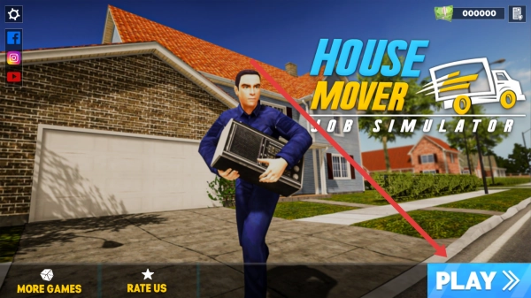1、启动House-Mover-Job-Simulator游戏,在游戏主界面点击PLAY按钮,进入游戏的核心流程。
