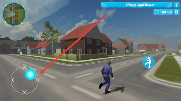 3、成功进入关卡后,可借助左下角的虚拟摇杆操控角色移动,前往任务指定的Jolies-House。