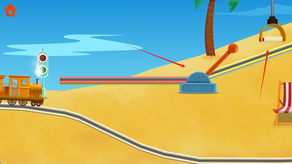 1、轨道拼接闯关:根据场景中的障碍,拖动不同形状的轨道碎片拼接完整路线,避开山洞、河流等阻碍,让小火车顺利抵达下一站,锻炼空间思维。