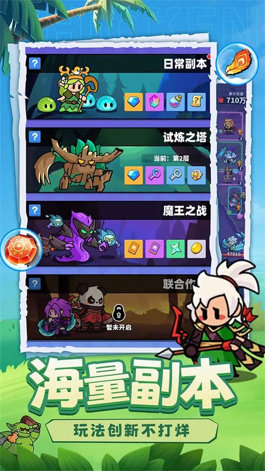 1、Q萌可爱的英雄等你来招募闯关,五种不同属性任你自由搭配多样阵容。