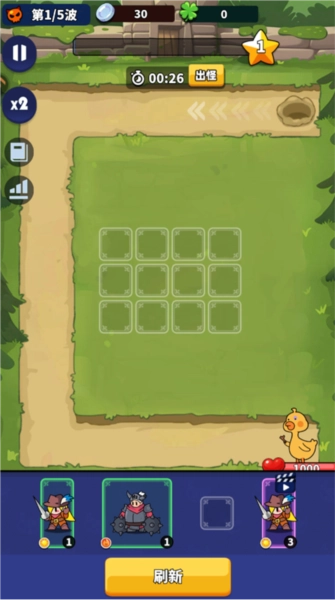 1、进入关卡玩家可以放置角色或刷出的格子。