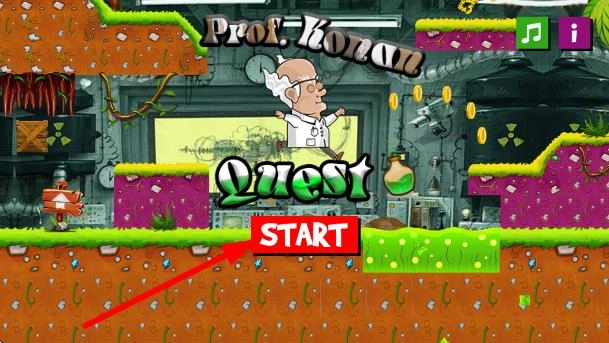 1、进入游戏初始界面后,点击醒目的按钮即可开启游戏冒险;可以先查看界面音乐、调整音效并了解玩法,然后再进入关卡。