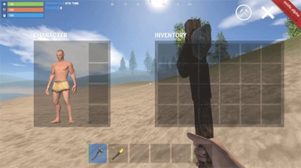 1、关卡内,我们的角色空包状态,身上只有一个火把和石头,然后就可以开始自己的生存之旅了。