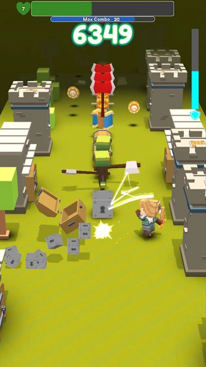 3、持续战胜敌人,推进至关卡MISSION200,积累最高连击数MaxCombo20,完成生存与战斗任务,突破场景中的灰色方块障碍。