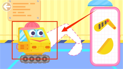 3、把画面右侧展示的各类零部件拖到中间的虚线框区域,记得要对准摆放的位置。