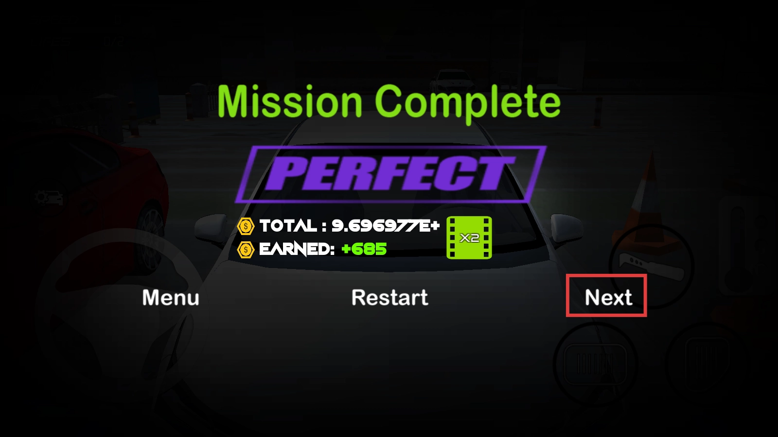 4、完成停车任务后,界面会显示【MissionComplete】,点击【Next】按钮就能解锁新关卡,继续挑战难度更高的停车任务。