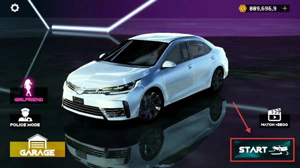 1、进入主界面后,点击右侧的【START】按钮,驾驶白色汽车开启停车挑战,尽情体验真实驾驶的乐趣吧。