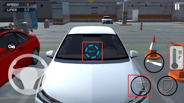 3、当出现【WAIT】提示时,我们需要耐心等待,等待过程中可以点击刹车来调整车辆状态,以确保停车操作顺利完成。