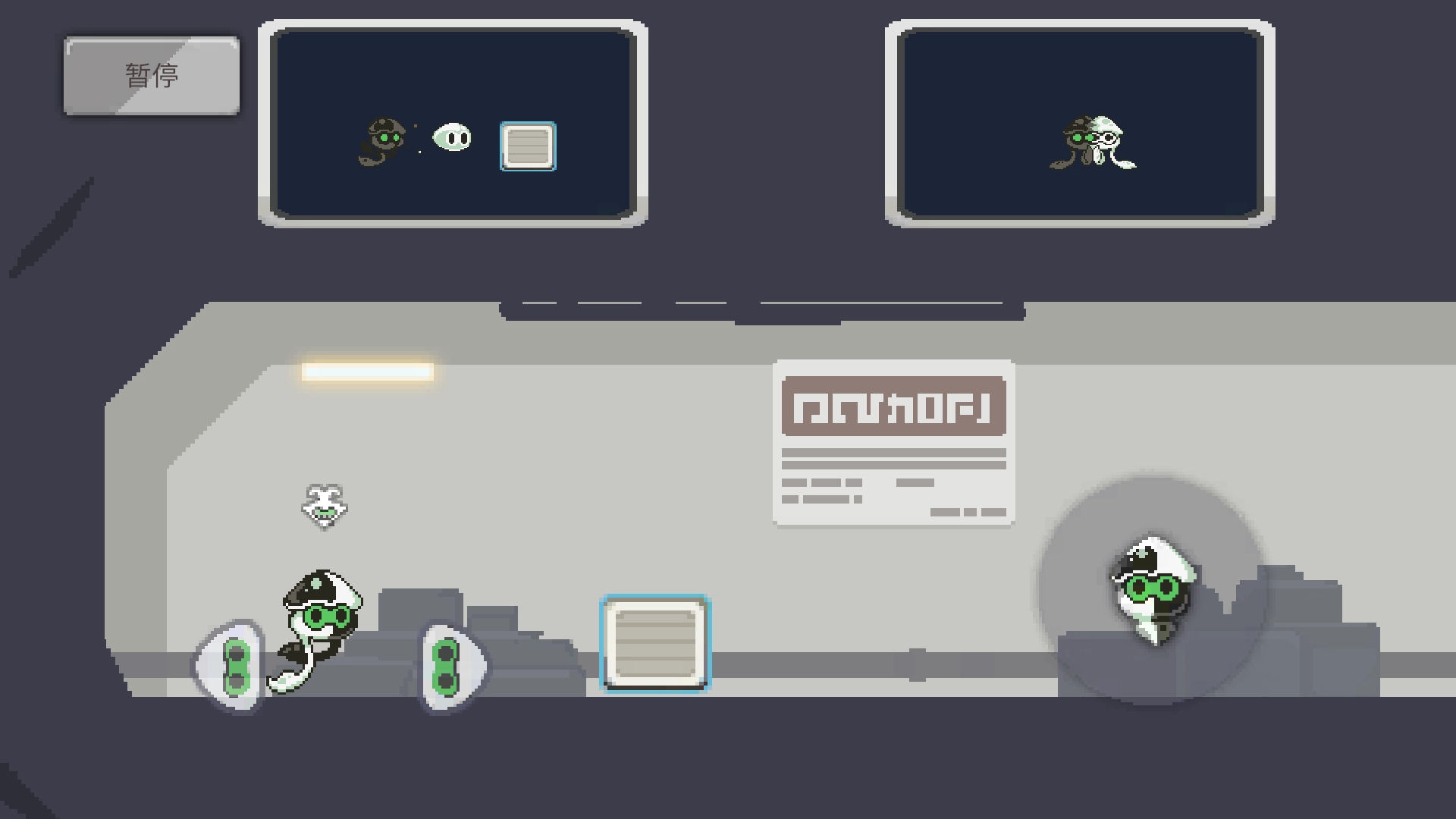 《轻分漫聚》是一款横版像素风格的解谜游戏。主角是名为轻轻与漫漫的两只乌贼,它们正从乌贼星出发,踏上漫长的归家之旅。游戏的核心机制围绕这两个角色展开:当它们分离时,彼此的灵魂会产生吸引力;而当它们合体时,叠加的生命重量则能帮它们开启回家的大门。