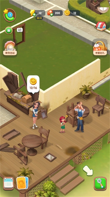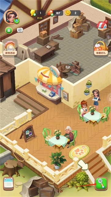 2、按照上方顾客的需求合成对应的食物,完成右上角的任务后即可开展装修。