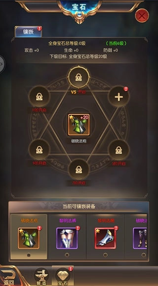 2、炼器:进入炼器可将直接装备强化、或镶嵌宝石。
