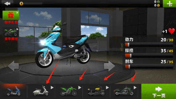 2、在这里你能解锁各式各样的摩托车或电动车来体验游戏,要是暂时没有资金,那就先去跑图攒钱吧