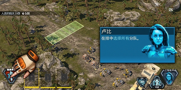 2、点击左下角按钮可以快速选中己方的所有战斗单位。