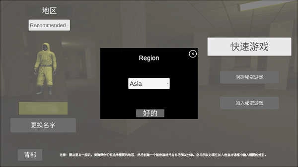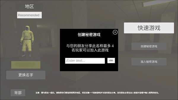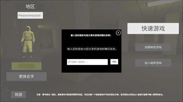 8、选择相同地图、地区后,输入相同的房间名称;