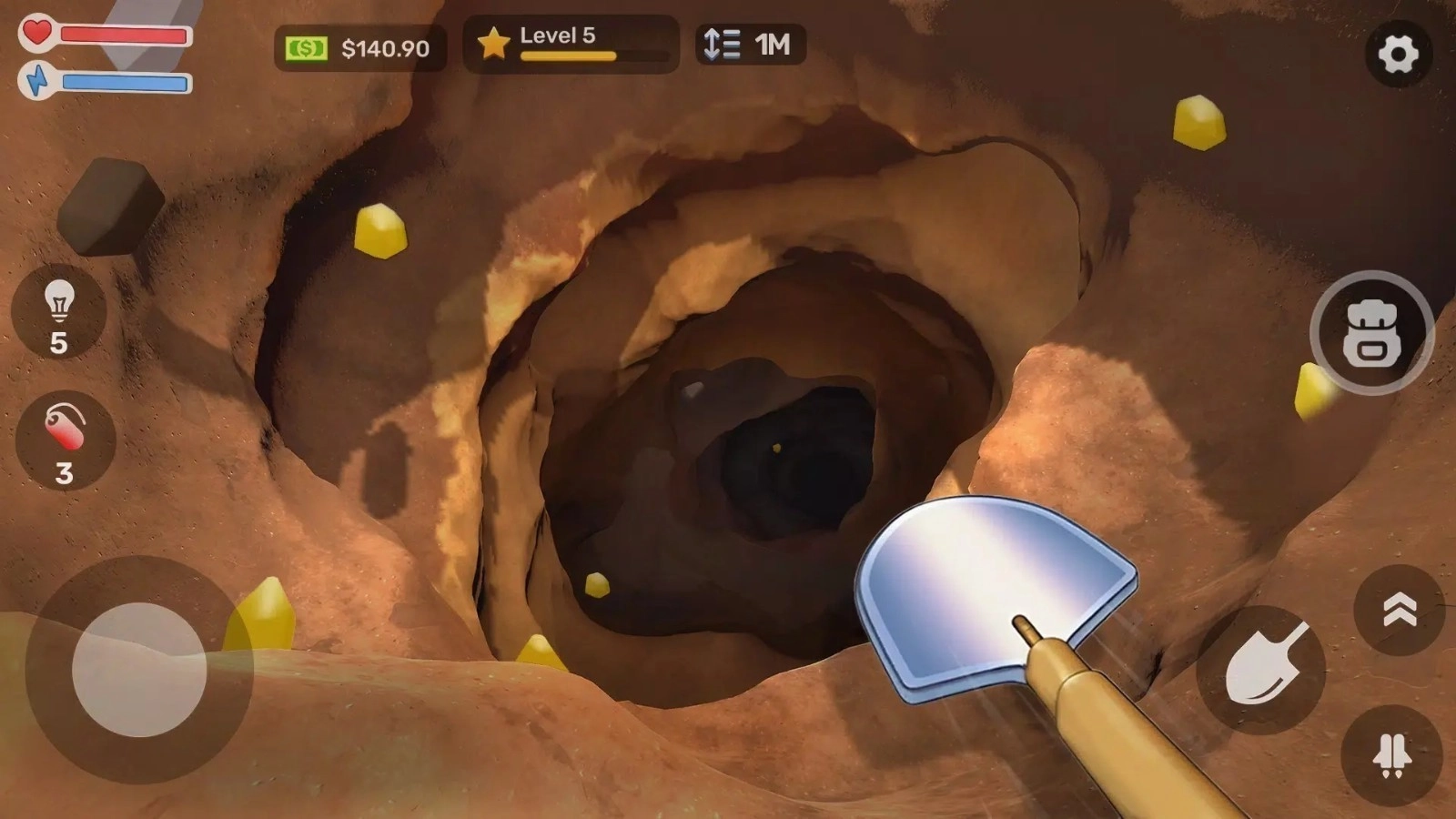 4、当我们拥有充足的资金后,便可以在商店里购置更优质的铲子,亦或是炸弹、绳索之类的道具。